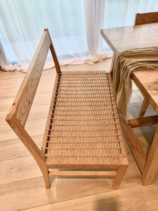 Tiene una estructura en madera paraíso macizo reforzada, asiento tejido en hilo KRAFT